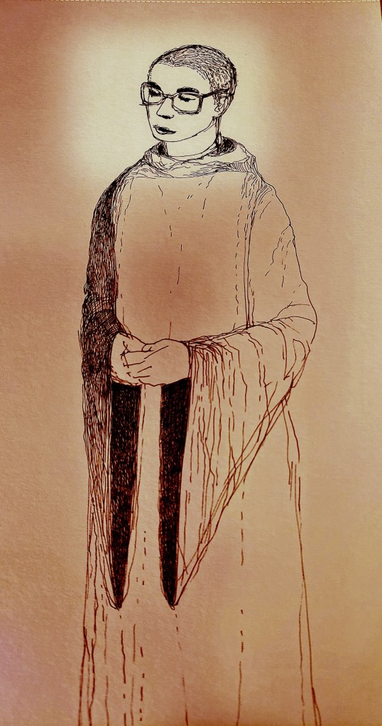 Rysunek przedstawia ojca Michała Gronowskiego OSB, rysunek na papierze 350gr